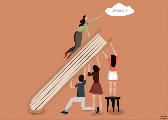 «Думая о важности неформального образования и критического мышления во время пандемии, я решила запустить социальную инициативу под названием Bir Fincan Kitab (One Cup of a Book), чтобы вдохновить местную молодежь на чтение книг. Я верю, что только образование и критическое мышление дадут нам достаточно сил, чтобы внести измениния в наше общество» Сара Раджабли