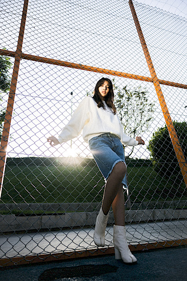 Şort ALESSANDRA RICH, sviter ANINE BING, botlar MAISON MARGIELA