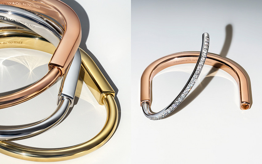 Peculiar and modern, Tiffany Lock is a bold visual statement about personal connections with other people and how these connections affect our personality formation. Featuring modern crisp lines and an advanced clasp mechanism, the new unisex four-bracelet collection debuted in September 2022.