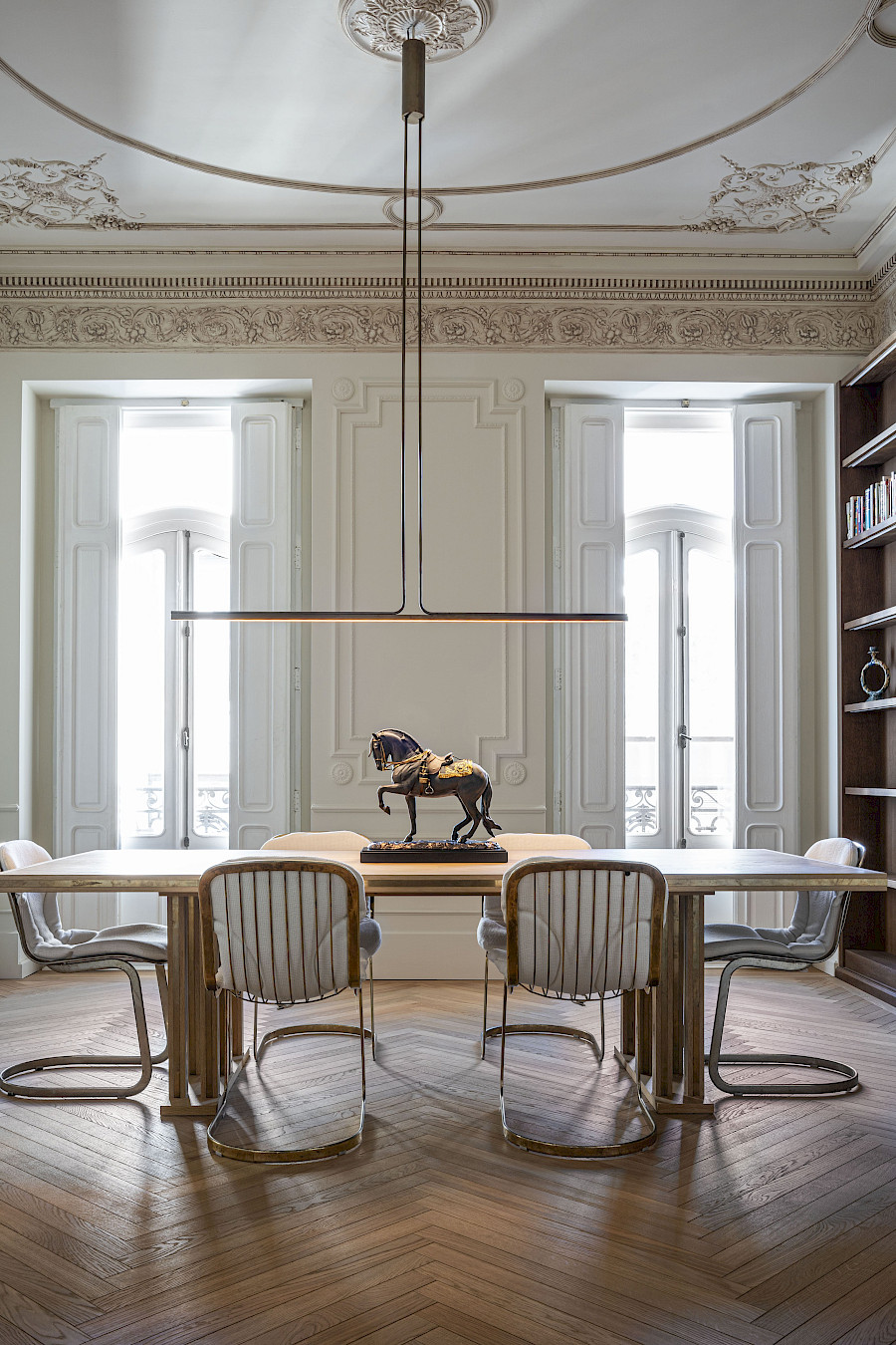 An abstract artistic language unfolds in Origami Horse. Inspired by the Japanese art of origami, this sculpture in black matte porcelain captures the animal in motion: a raised leg and carefully balanced silhouette evoke a sense of dynamism and poise. Faceted surfaces enhance the interplay of light and shadow, emphasizing the elegance and discipline of the form.