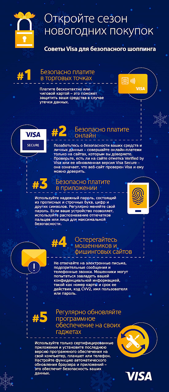Мы предлагаем идеи подарков, которые помогут вам вдохновиться и найти те самые, идеальные, сюрпризы для ваших близких. А Visa напоминает о простых правилах безопасных покупок и желает прекрасных новогодних каникул.