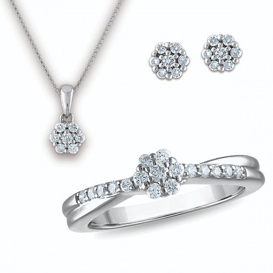Ювелирный гарнитур станет приятным сюрпризом для вашей девушки и подарит особенный блеск ее наряду в новогоднюю ночь.