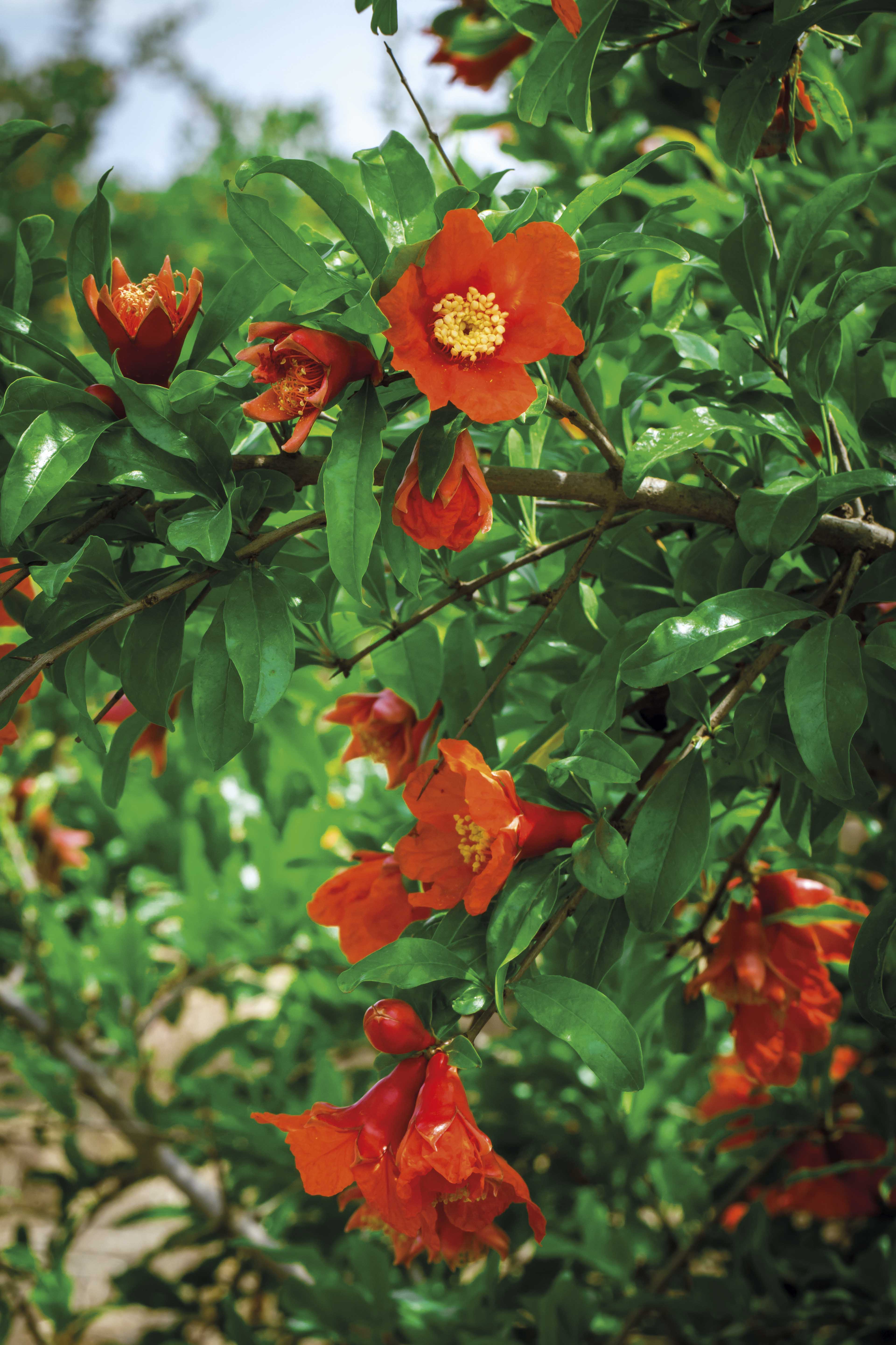 Весной мы побывали в гранатовых садах Кюрдамира и наблюдали роскошное зрелище – цветение граната. Не удивительно, что эти крупные оранжево-розовые цветы постоянно становятся объектом поэзии или философских размышлений. Гранат на самом деле кустарник и растение это однодомное, то есть на его ветвях распускаются одновременно и мужские, и женские цветки. Женский цветок, из которого вызревает плод, силуэтом напоминает молочный кувшинчик, а мужской – восьмиконечную звезду.