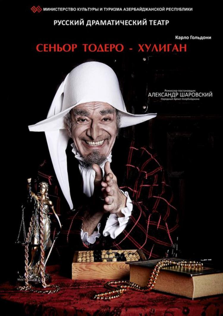 Не пропустите премьеру «Синьор Тодеро-хулиган» по пьесе Карло Гольдони в исполнении народных и заслуженных артистов Натальи Шаровской, Фуада Османова, Мелек Аббасзаде, Олега Амирбекова, Максуда Мамедова и других артистов театра. В главной роли – юбиляр Мабуд Магеррамов.
