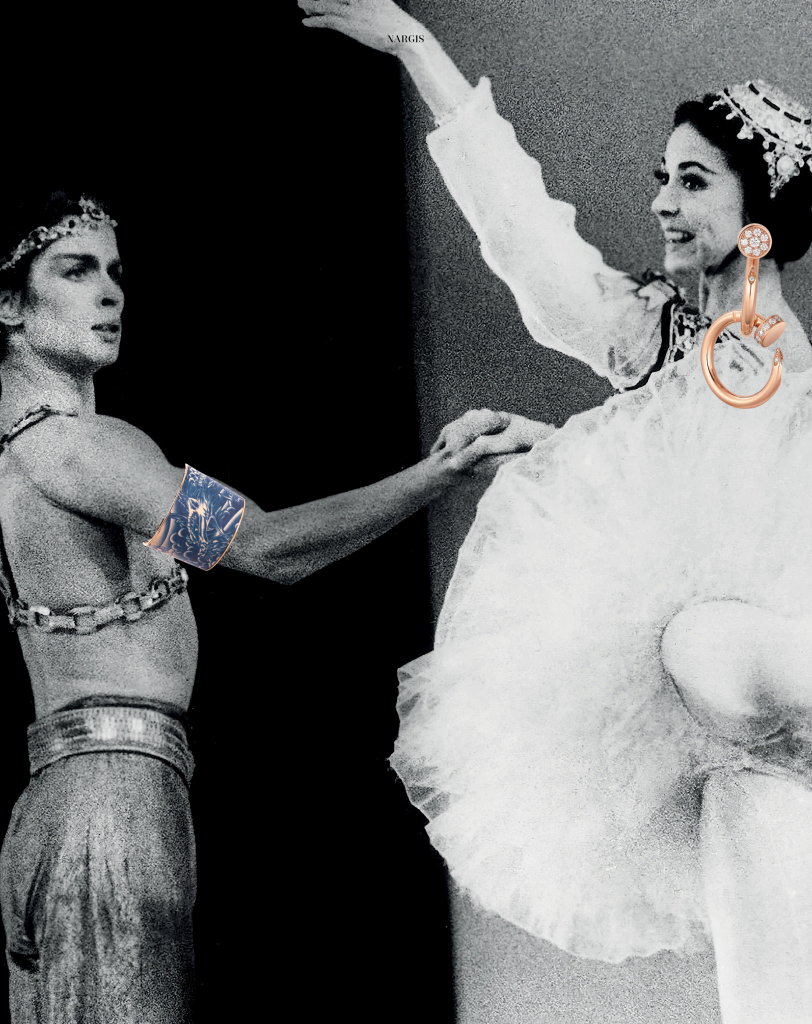 Cartier Juste un Clou earrings / Jean Paul Gaultier Japanese Dragon Tatoo Print Cuff bracelet
