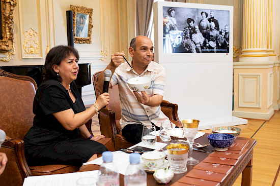 В процессе лекции Тельман Ибрагимов продемонстрировал уникальную методику оценки качества фарфоровой посуды, сравнивая звучание разных образцов 19-го века. При легком ударе по краю фарфорового изделия, содержащего более 50% каолина, можно услышать долгий, чистый и мелодичный звук – именно он является свидетельством высокого качества. В этом сравнении фарфор венгерского производства от Herend выделился на фоне античного китайского фарфора своим ярким и чистым звучанием, что говорит о высоком качестве и мастерстве его изготовления.