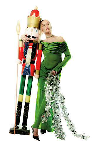Платье CHRISTOPHER ESBER, туфли SAINT LAURENT, серьги MOUNSER