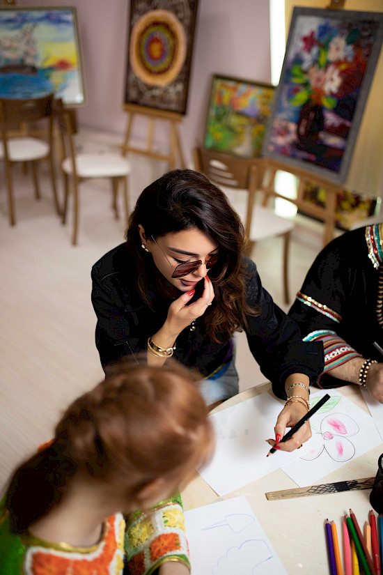 После представления Ульвия Махмуд ознакомилась с деятельностью центра, побывав в комнатах для творческого развития и подготовительных курсов. Она провела время с «детьми солнца», приняв участие в творческом процессе: они вместе рисовали, разговаривали, дети делились своими интересами, показывали свои умения в ковроткачестве, лепке, игре на пианино.