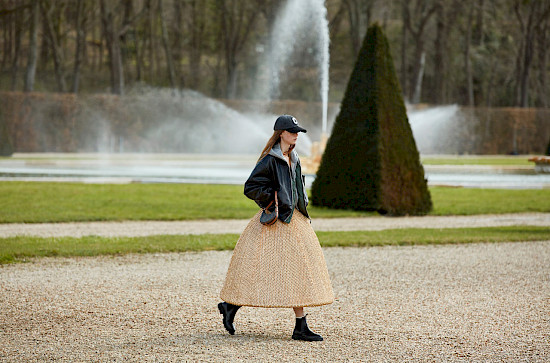 Тот факт, что шоу проходило посреди роскошных садов Шато Во-ле-Виконт, только укрепляет в сознании французскую идентичность бренда. Современные девушки Celine – это томящиеся в своих владениях принцессы, небрежно прогуливающиеся среди многовековых фонтанов и бассейнов с томиками поэзии эпохи романтизма. Эти августейшие особы с нетерпением ждут возращения привычного ритма жизни с его вечеринками, балами, фестивалями и театральными постановками. И, не теряя времени, примеряют свои наряды уже сейчас, создавая неожиданные сочетания, лучшим примером которых стал финальный выход – модель в расшитом вручную сверкающим бисером кринолине в тандеме с паркой и бейсболкой, стоит на возвышении и смотрит на фейерверк в небе над замком в компании волшебного оленя. Чем не современная сказка? И финальный аккорд – бегущая по щеке слеза, как символ мечты о том дне, когда принцесса сможет надеть этот наряд и блистать.