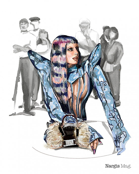 "The name of the illustration is "horse power», and this animal embodies strength, freedom and a certain wildness. These qualities are inherent to people who are experimenting, not afraid to try new things and surprise themselves, and feel the freedom to do it. Girl dressed in Stella McCartney fur coat»