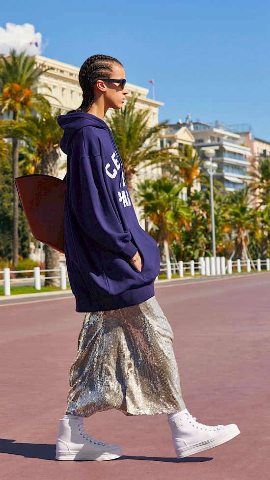 Она все та же парижанка. Но теперь она слушает рэп и хип-хоп и носит шорты, джинсы, блузки в стиле восьмидесятых, бейсболки и шляпы-ведра. Новая женщина Celine относится к поколению Z. Она обладает совсем другой энергией, она оптимистична и даже в наше неопределённое время не теряет надежды.