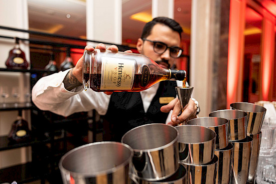 Tədbirin əvvəlində qonaqlara Hennessy V.S.O.P konyakının əsasında hazırlanmış nar siroplu və qırmızı vermutlu kokteyllər təqdim olunub. Sonra qonaqlar qastronomik şam yeməyi təşkil olunmuş zala dəvət olunub.