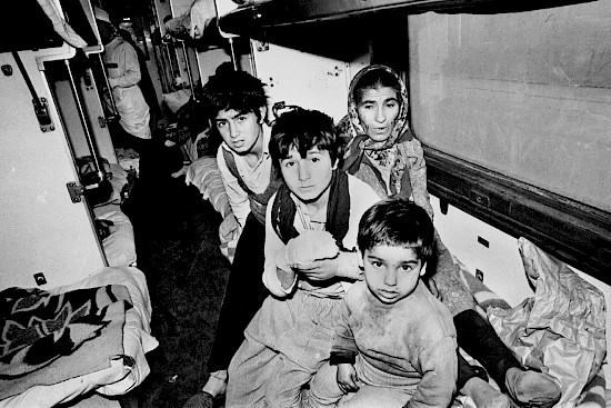 Jurnalist Yuri Romanov “Mən müharibəni lentə alıram” (2001) kitabında eynilə belə sanitar qatarda rast gəldiyi Xocalıdan olan 6 yaşlı qızcığazla görüşünü qələmə alıb. Göz bandajı taxırdı. “Göz bandajı hər iki gözünü örtmüşdü. Videokameranı söndürmədən ona tərəf əyilib soruşdum: “Balaca, sənə nə olub?” Uşaq cavab verdi: “Gözlərim yanır, əmi, gözlərim yanır!” Həkim izah etmək üçün çiynimə toxundu: “Kordur. Gözləri siqaret kötükləri ilə yandırılıb. Bizə gətiriləndə siqaret kötükləri hələ də gözlərində idi”. Dan yeri söküləndə Romanov saçlarının ağardığını görüb.