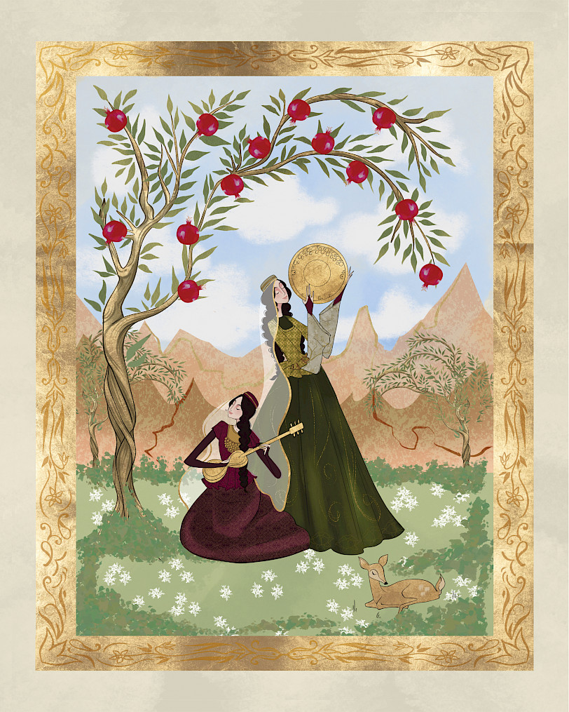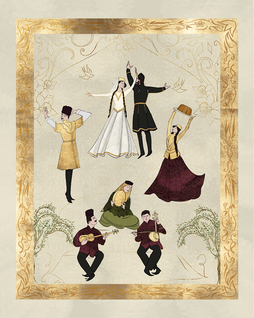 Nərgiz Alee'nin illüstrasiya seriyası Şərq miniatürlərindən ilham alaraq Azərbaycan ənənələrini və geyimlərini canlandırır. Zərif detalları və zəngin rəngləri ilə bu illüstrasiyalar irs və mədəniyyətin gözəlliyini tərənnüm edir.