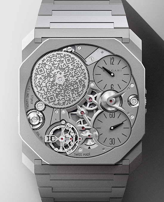 Символ абсолютного мастерства в часовой механике, открывающий перед всей часовой индустрией новую эру: связь между традиционной механикой и цифровыми технологиями, миром NFT и блокчейна. Благодаря QR-коду, выгравированному на барабанном колесе, часы Octo Finissimo Ultra открывают совершенно новые горизонты современного высокого часового искусства и расширяют его, охватывая глобальную взаимосвязанную экосистему.