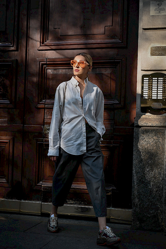 Classic, bold, and casual. I would say that my style has character. It is important for me to feel comfortable and find confidence in clothes. I have plenty of masculine elements in my wardrobe: oversized jackets, and shirts in shades of grey, black, and white. But with the advent of the pandemic, a lot of bright items started to appear in my wardrobe too.