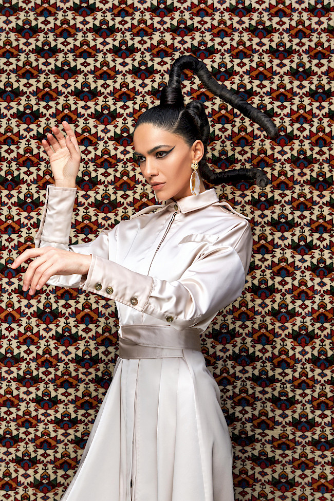Sabina: Trench coat NAVEEN, shirt TOUCHE PRIVE, earrings BAGHIRI