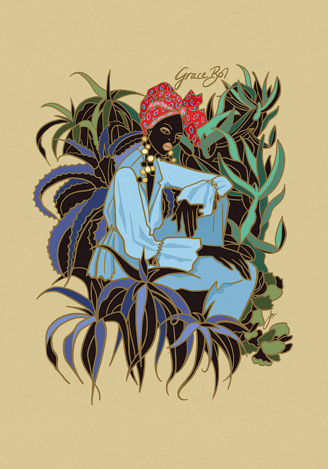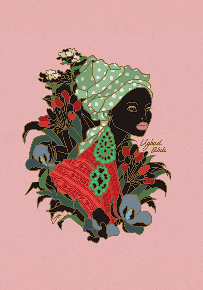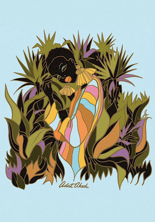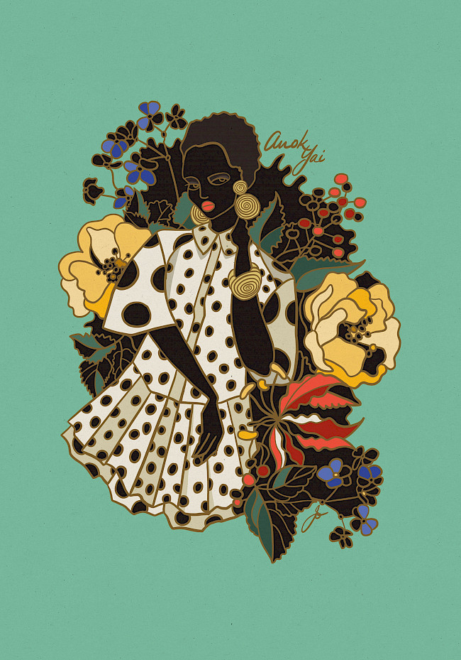 These six young models all have their african roots and fame in the west in common. Cape town artist, Jo Thomas, has illustrated these women connecting the two parts of their lives: western and african fashion.