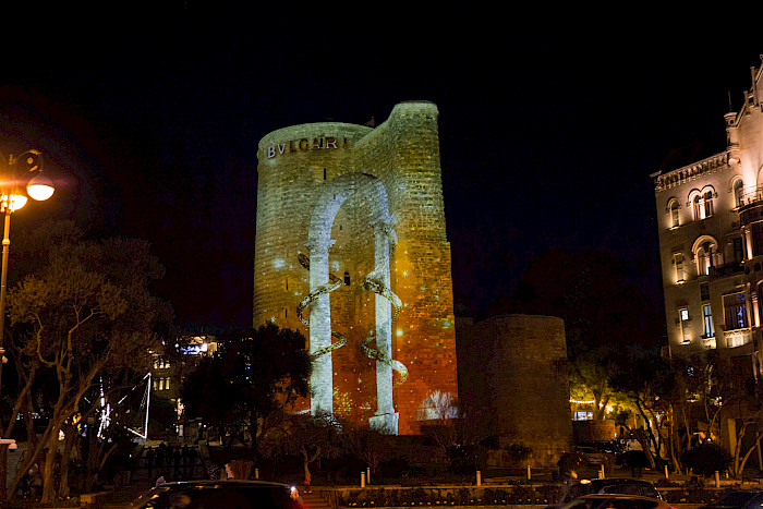Concluding the anniversary year, the event in Baku was its crowning moment. An eye-catching 3D mapping of Serpenti on the Maiden Tower, consisting of two snakes representing the collection, grabbed everyone's attention. The concept was suggested by the NARGIS Magazine team, led by Ulviyya Mahmud. It was an unprecedented sight – global jewellery motifs adorning Baku's iconic architectural symbol, a recognised UNESCO World Heritage Site.