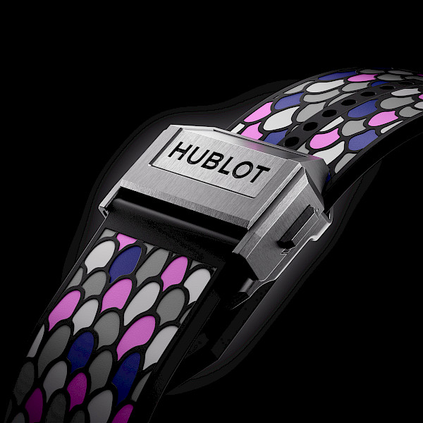 A rubber strap with a marquetry design Hublot has invited Chinese artist Chen Fenwan to combine traditional Chinese “sculpture in the round” with contemporary art, creating a majestic and dynamic loong, which conveys an auspicious atmosphere as it rises to the heavens. This artwork symbolizes the ever-renewing totem of life. Expressing Hublot’s philosophy ‘Be First, Unique and Different.