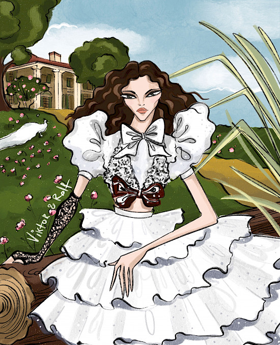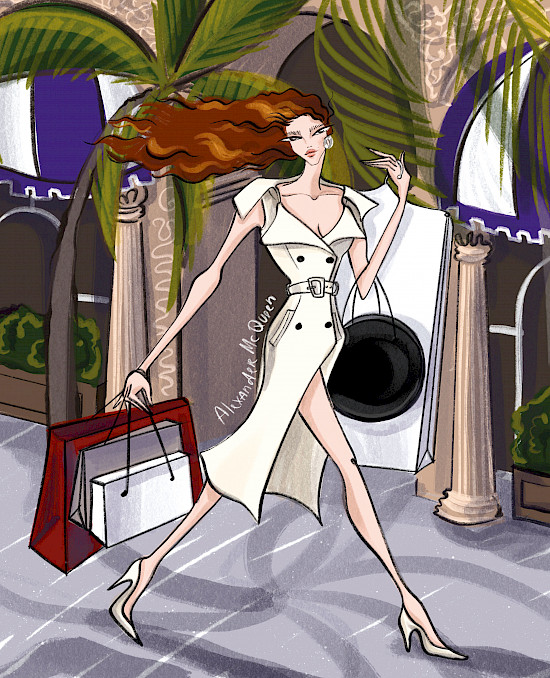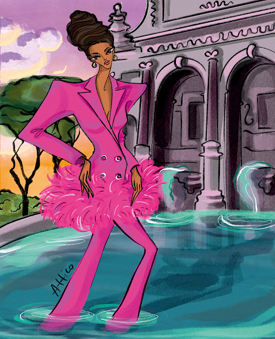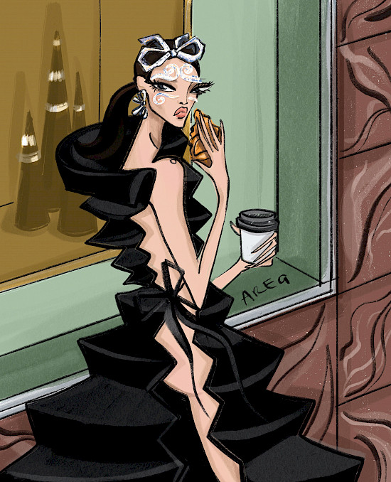 Это был переломный момент в моей творческой жизни. После окончания института в Риме я была в поиске себя. Запутавшись, не понимала и не знала, чем хочу заниматься. В какой-то момент я решила, что мне нужно сменить обстановку, и переехала в Милан. Там для меня открылся абсолютно новый мир. Первое время было сложно, я была совершенно одна, друзей и любимого я оставила в Риме. Это был идеальный момент для переосмысления себя в одиночестве. Я очень много гуляла, изучала город, ходила на выставки, в музеи. Вдохновившись атмосферой мне безумно захотелось рисовать, и я стала ходить по городу с блокнотом и карандашами, рисуя местные кафе, людей, и витрины модных бутиков. Потом я застала неделю моды в Милане, в тот момент все во мне перевернулось. Я поняла, чего именно мне не хватало: свободы, красок и легкости творчества. С того момента я сконцентрировалась именно на моде, начала изучать бренды, художников. Рисовала день и ночь, как безумная. Это был один из моих самых продуктивных периодов.