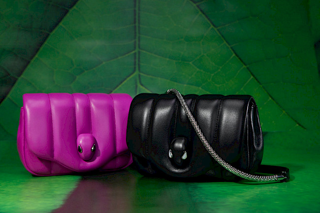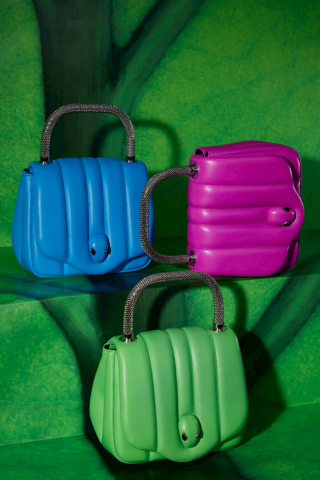 Jewelry house Bvlgari introduced a new limited collection of bags and accessories in collaboration with the fashion-forward Japanese brand Ambush. Designer Yoon Ahn took a new look at the design of bags from the Serpenti line and created an avant-garde interpretation with soft shapes inspired by the natural grace of the snake. The collection includes bags with a short handle, belt bags, heart-shaped clutches-minodiers and bright pink, green, sky blue and black nappa leather bracelets. The most famous snake in the world – Serpenti clasp – has been completely transformed, and the sparkling metal logo BVLGARI AMBUSH completes the design of bags with notes of glam rock.