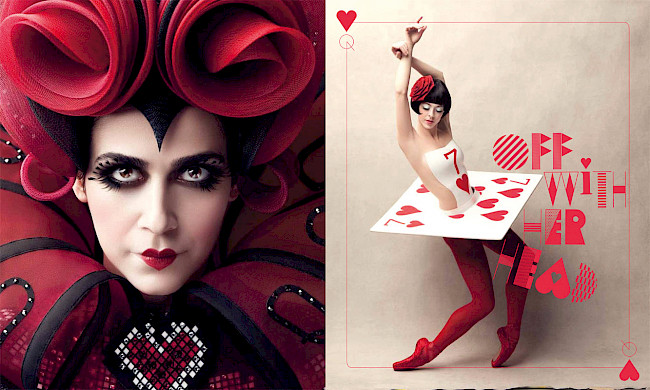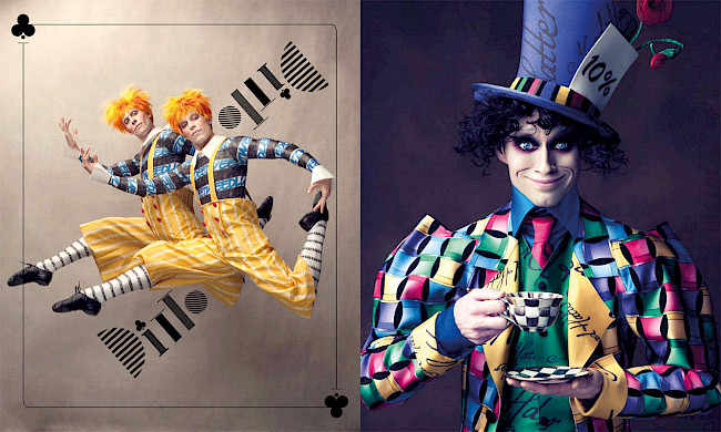 For well-known performances we have to keep archetypes that people will recognize, which is more challenging. For ballet, for instance, the cultural codes should be respected to make sense for the audience. You have to balance new with well-known. People love that. You should give them what they know and then push a little further. There were many secrets in every costume in Alice: like the name Alice was scissored out in every direction on her dress, Mad Hatter had hats all over his plaid jacket. People may not see that, but they feel the innovation and appreciate it.