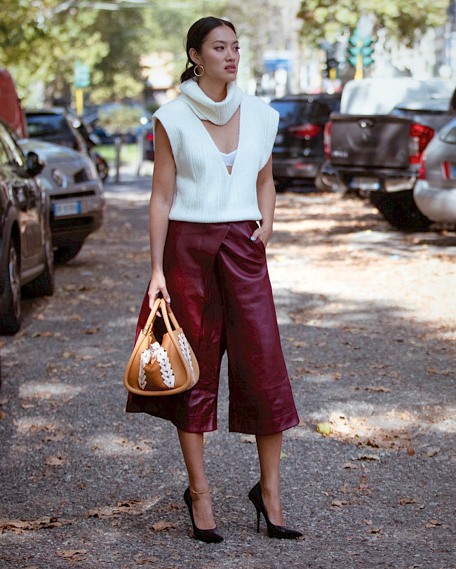 I cannot wait to wear a pair of Bermuda shorts combined with oversized jackets as suits! Maison Margiela, Valentino and the new Korean brand Low Classic have some amazing offerings. Anything leather on leather especially from the likes of Bottega Veneta and Gucci I am literally obsessed with. But you should also invest in cool paper bag high-waist trousers, especially in denim, like from Isabel Marant, Ganni or Ulla Johnson and a pair of military boots.