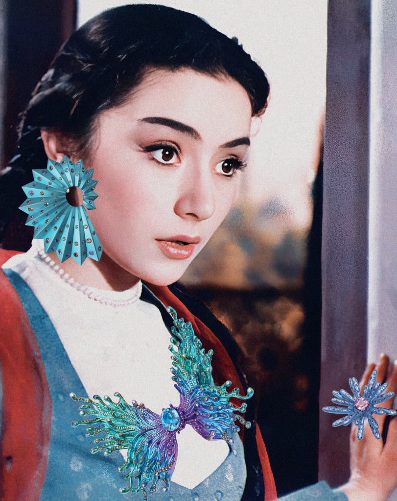 Wallis Hong “The Dreams” earrings / Wallis Hong “Eternal Butterfly” brooch