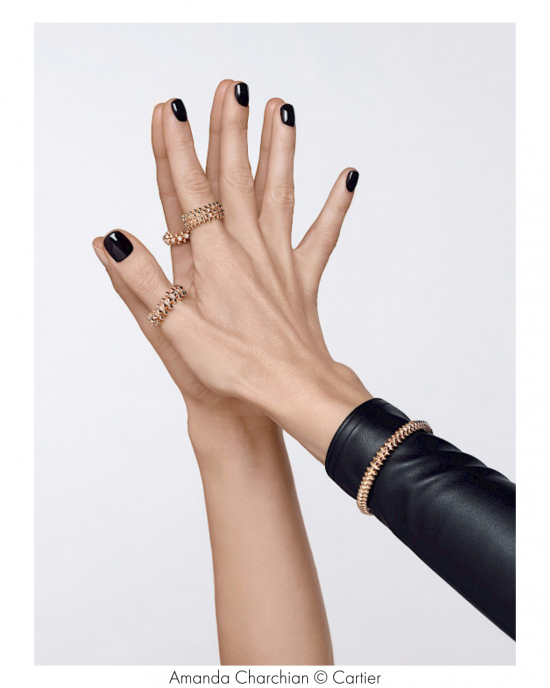 В ассортимент Clash de Cartier входят браслеты, подвески, серьги и кольца в версиях с бриллиантами и без, а также изделия с укрупненными деталями Clash de Cartier XL из розового золота. Вневременная классика коллекции – браслеты на мягком и жестком основании, кольца и мягкие колье из розового и белого золота – подходят как женщинам, так и мужчинам, ценителям элегантности и авангарда, не боящимся нарушать правила. Кроме того, коллекция постоянно расширяется! За время ее существования состоялось три лимитированных запуска изделий Clash de Cartier XL: были выпущены серьги-каффы, браслеты, кольца из розового золота с бусинами из коралла или амазонита, а в прошлом году ассортимент лимитированных изделий пополнили версии в белом золоте с шипами из оникса, бриллиантами и бусинами из черного таитянского жемчуга. Вдобавок, среди прошлогодних новинок были представлены серьги, браслет, кольцо и подвеска из розового золота, дополненные бусинами из оникса, а также сет из трех изделий – кольца, браслета и моносерьги с бусинами и шипами в новом размере medium.