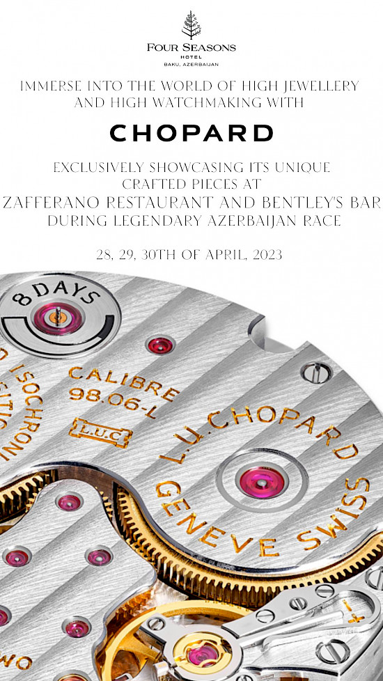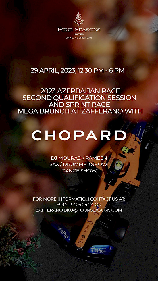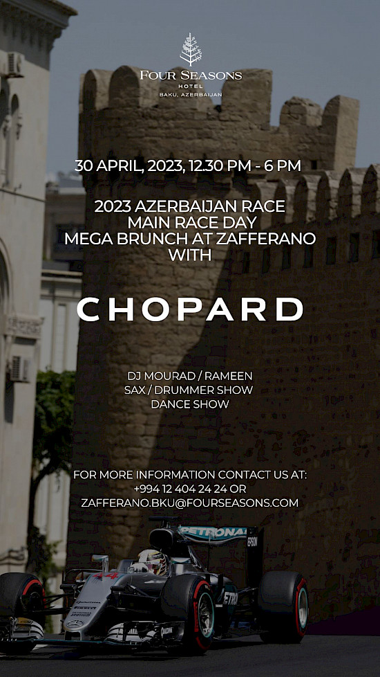 Being perched along the waterfront in the heart of central Baku, with the medieval walls of the Inner City just steps away, Four Seasons Hotel Baku is inviting guests and residents of the city to stay in the centre of the action and watch the race right from the balcony of their own rooms or while enjoying culinary delights during special events held in Kaspia Rooftop or in Zafferano Restaurant and Bentley’s Bar, exclusively partnered with Chopard to enhance the guest experience.