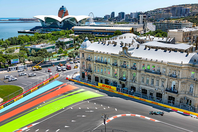 The city circuit thrives amid Baku's attractive urban atmosphere, reflecting the daring combination of ancient and modern architecture. As the track enters the historical city centre, the drivers face an extremely narrow uphill section at the Old Town wall, the most exhilarating part of the race, while providing unusual ambiance for this spectacular track.