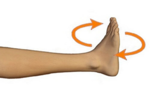 - Начните плавно выполнять круговые движения стопой в направлении по часовой стрелке, стараясь максимально напрягать мышцы стопы.