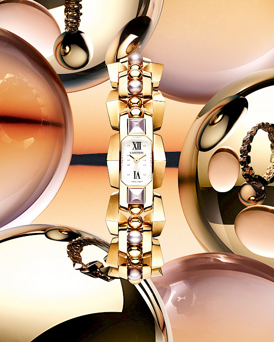 От граненых углов и скошенных циферблатов до заполненных и пустых пространств, а также круглых и квадратных элементов — их геометрия постоянна и выполнена в лучших традициях дома. Культура дизайна уравновешивается присущей Cartier графической точностью взаимодействия всех деталей: от перекатывающихся друг через друга бусин до шарниров браслета — все подвижно, чтобы создать ощущение мягкости на коже.