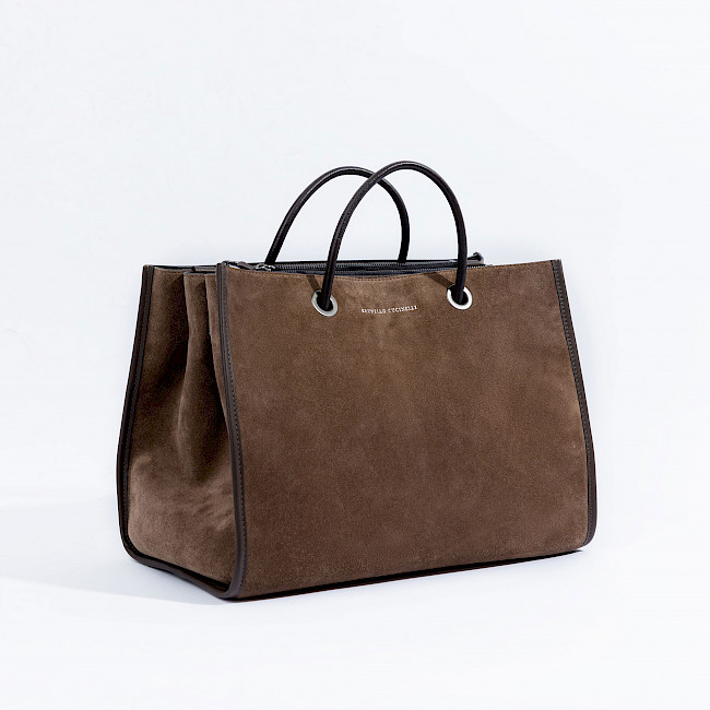 Объемная сумка из замши и кантом из вышивки в знаковой для бренда технике Мониль отличный спутник на каждый день. Глядя на эту красоту шоколадного цвета, вопрос о правильности выбора подарка перестанет быть актуальным.