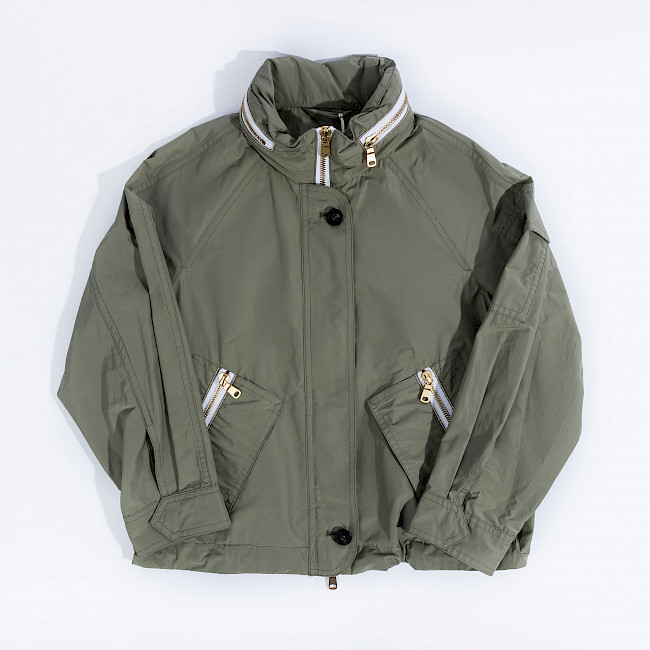 Легкая и почти невесомая куртка из хлопка и нейлона в благородном оттенке листвы Оливы с позолоченной фурнитурой – практичный выбор для межсезонья, который прекрасно впишется в ансамбль к школьной форме, так и отлично подойдет для прогулок с любимыми питомцами.