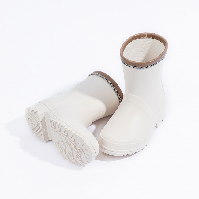 Любое приключение в любую погоду станет комфортным, если надеть прочную обувь, какой являются эти белоснежные сапоги из легкой и прочной резины в универсальном стиле, которые гарантируют максимальную непромокаемость.