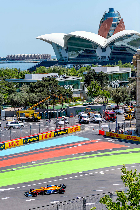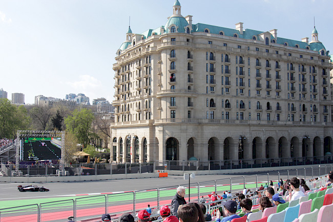 Баку воплощает сочетание истории и современности 21 века и во время Формулы-1 этот фактор играет не маленькую роль. В момент, когда трасса входит в исторический центр города, гонщики сталкиваются с чрезвычайно узким участком подъема у стены Старого Города - самой волнующей частью гонки.