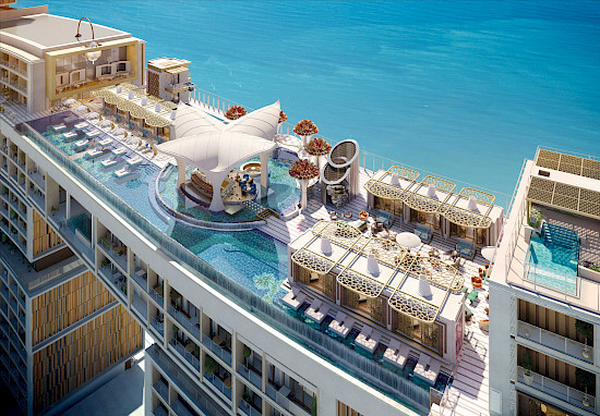 В Cloud 22 с панорамным бассейном и частными кабанами на высоте 90 м над землей атмосфера достигнет апогея на закате: яркие огни большого города и зажигательные танцевальные ритмы неизменно будут притягивать любителей шумного отдыха. С 22 этажа гости насладятся роскошным видом на Дубай. Бар, не имеющий аналогов в мире, создан мишленовским шеф-поваром Хестоном Блюменталем, известным любовью к молекулярной кухне. Resonance предложит гостям зрелища и вкусы грандиозного размаха в соседстве 4000 фантастических медуз, плавно скользящих в одном из крупнейших в мире аквариумов, специально построенном для этих древнейших обитательниц нашей планеты.
