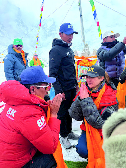 Вся экспедиция — около 35 дней. Финальный штурм начался, кажется, в 18:30–19:30 по Непалу. А утром (около 8:00–8:30) я уже стояла на вершине. Затем сразу пошли вниз — всё прошло точно по плану.
