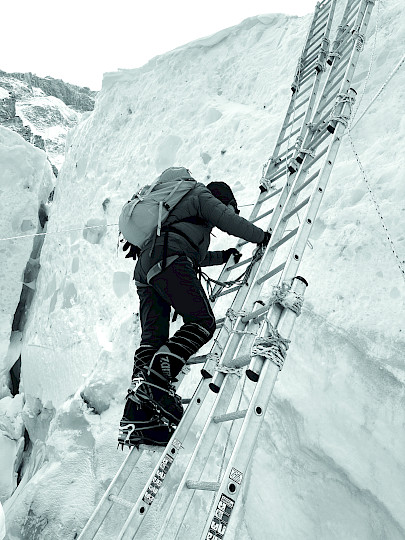 Для меня самый тяжёлый участок — от лагеря 1 до 2. Длинный, утомительный, физически и морально истощающий. Технические части было легче. Но плоский, монотонный маршрут был изнурительным. Ещё сложно было от лагеря 4 — там умирало много людей, ощущаешь тишину смерти.