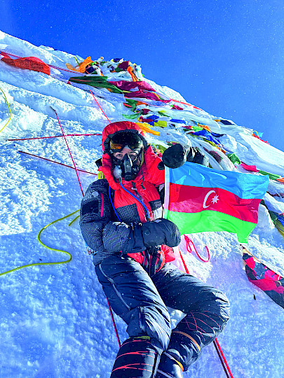 Я поблагодарила Эверест за то, что он меня принял. Мы считаем, что гора — священное место. Если она отпустила тебя, значит ты её достоин. Я приложила голову и руку к горе — как к поцелую и объятию. Поблагодарила Создателя. Могущественная красота окружила меня. Я даже сняла момент поднятия азербайджанского флага. Я чувствовала удачу.