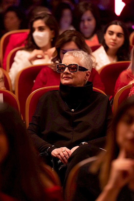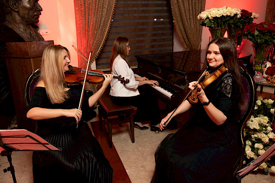 В фойе театра гостей встречала таинственная атмосфера: красная ковровая дорожка, приглушенный красный свет, великолепные розы в каждом уголке, приятная классическая музыка. Согласно заявленному дресс-коду Red Touch каждый из гостей имел красный элемент одежды.