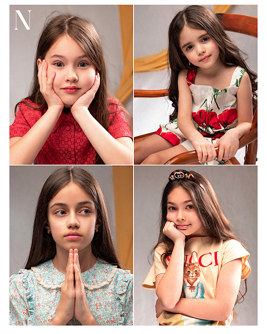 Banu: clothing DOLCE & GABBANA KIDS/Leyla: T-shirt, hat, shoes BURBERRY KIDS, shorts GUCCI