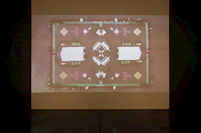 Видео Фаика Ахмеда «Социальная анатомия» демонстрирует симметрию узоров азербайджанских ковров и структуру, обрамленную прямоугольной зелено-красной тканью. На видео анонимные участники создают живой ковер, символизирующий социальную структуру.